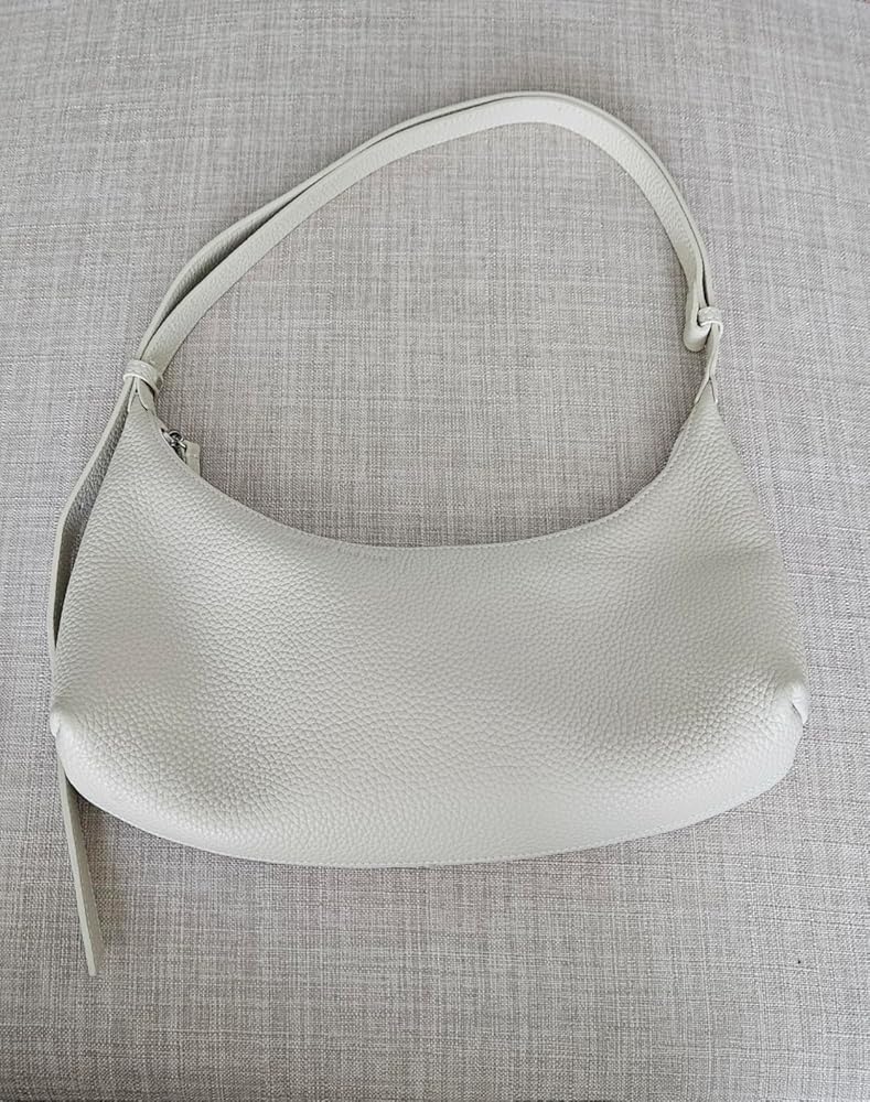 This bag is pure perfection. From the craftsmanship, the texture, the timeless silhouette ? everything about it whispers quiet luxury. The pebbled leather is soft and supple, and yet the shape holds a unique structure. You can see and feel the quality in every detail. It's the perfect bag for running errands, but can also easily be dressed up. It is in the most perfect neutral tone, making it super wearable. And the minimal modern shape gives a chic "off-duty model" look.